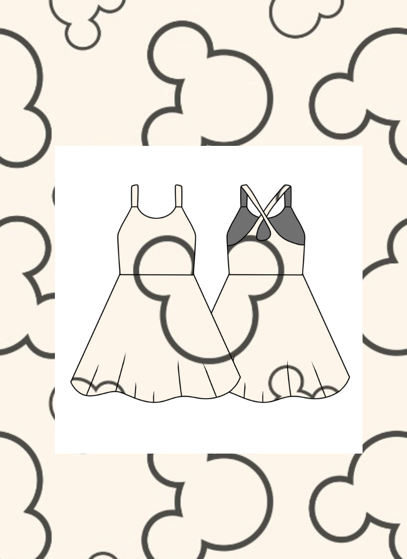 Black outlines head tennis dress RTS
